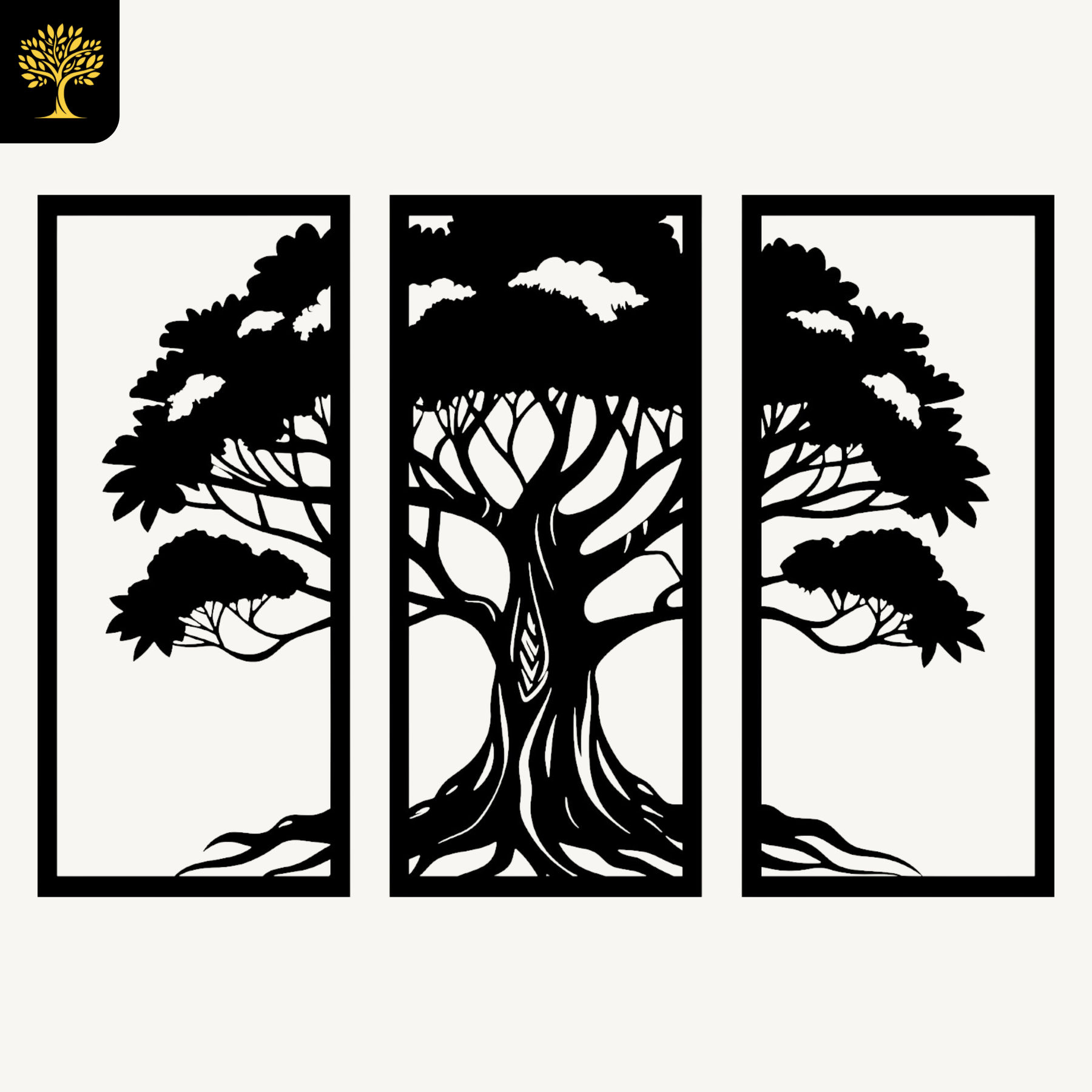 Organische vormen, diepe schaduw en rustige symmetrie: deze 3-delige levensboom geeft je muurkarakter zonder te onmogelijk. Een tijdloos symbool, strak vertaald naar een modern silhouet dat directe sfeer en balans brengt.
