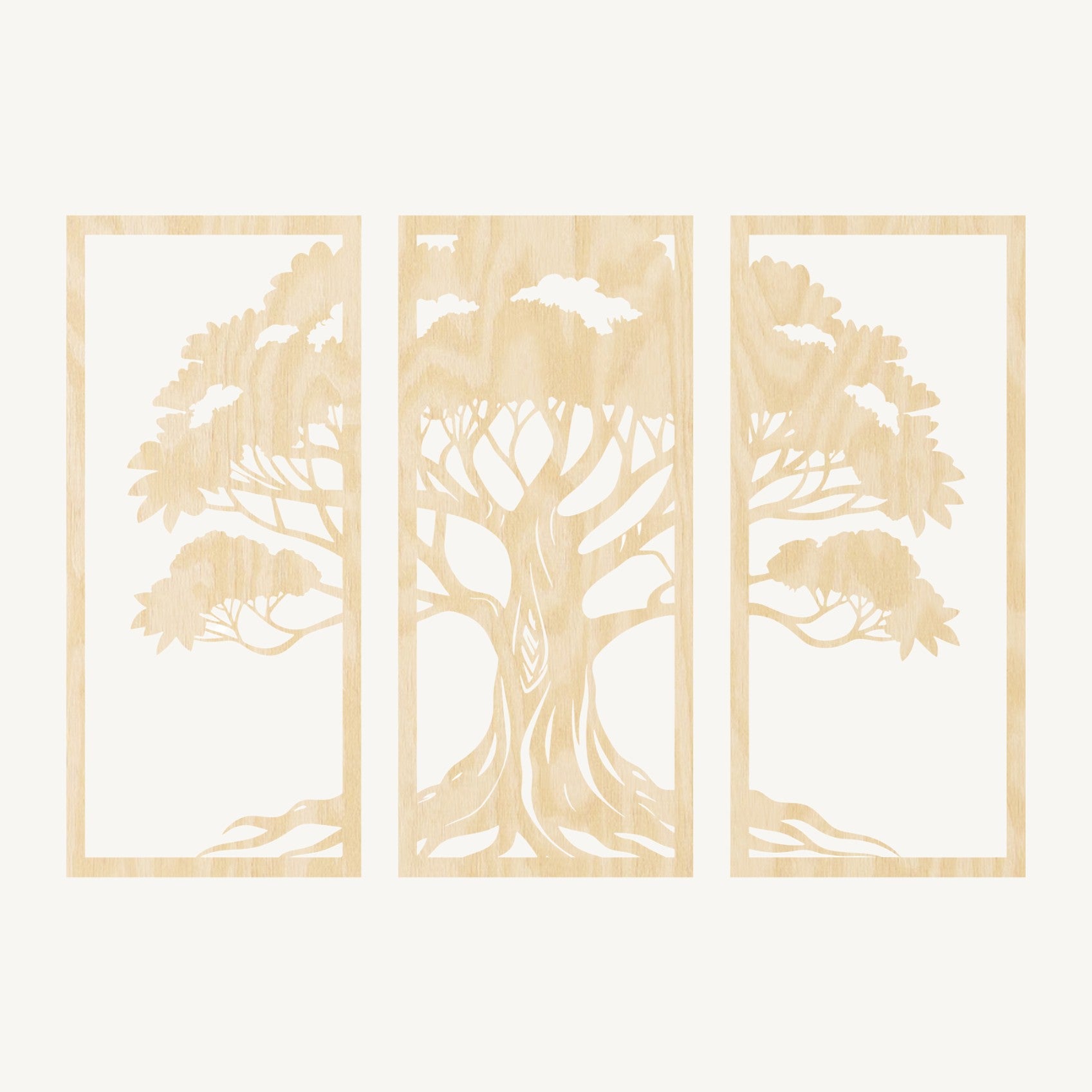 - Tijdloze 3-panelenset – de levensboom verdeeld over drie panelen voor extra diepte.